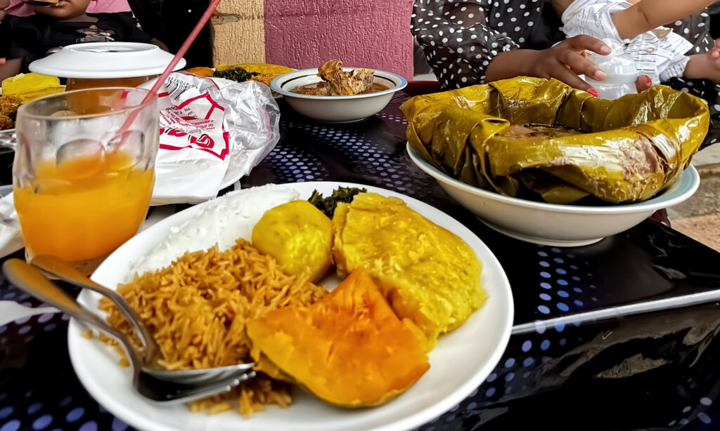 - Cassava: Another local starch, boiled until soft. Slightly chewy, it’s an acquired taste.